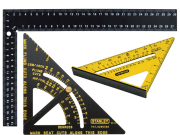 The go to tool when hand cutting a roof. Hips, valleys, bird beaks, plumb cuts and overhang cuts can all be determined using this square. Rises and pitches can also be calculated using the unique conversion chart on the square itself.